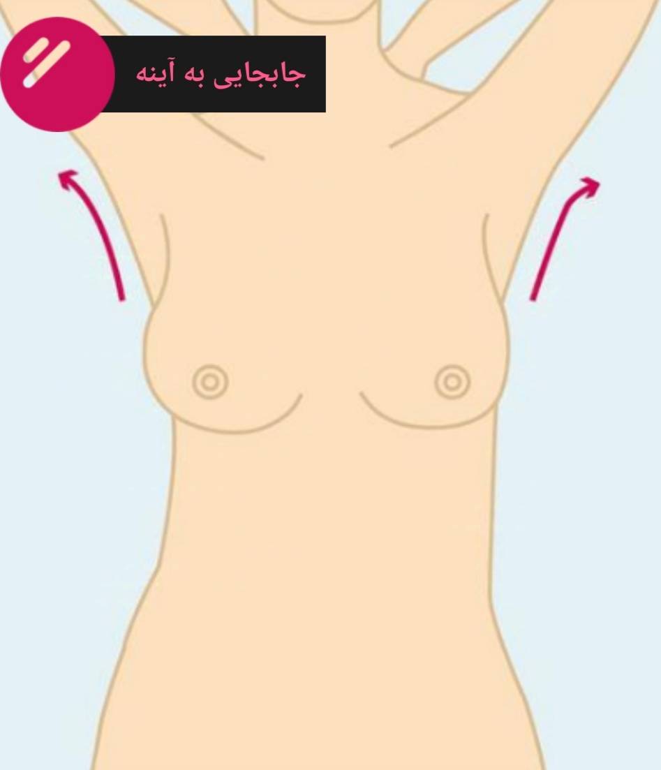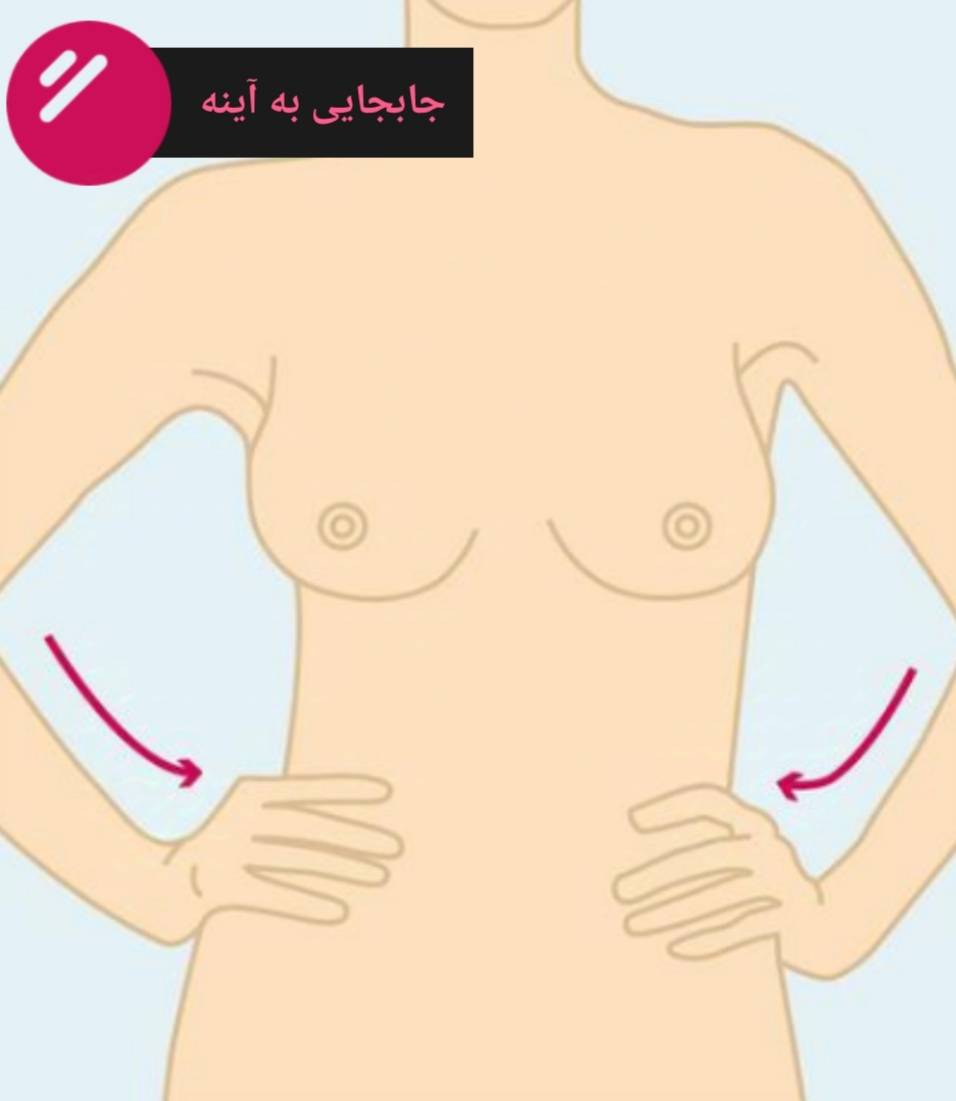 صاف بنشینید و دست هایتان را روی ران هایتان بگذارید. به کمک آینه، تلفن همراه یا یکی از دوستان تان، سینه های خود را بررسی کنید.
